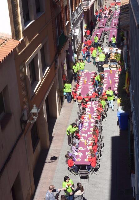Aquest migdia hem fet el gran dinar de germanor per celebrar el 50è aniversari de la nostra escola. Hem tret les taules al carrer Sant Pere i hem dinat plegats des de P3 fins a 6è, juntament amb les mestres i monitores.